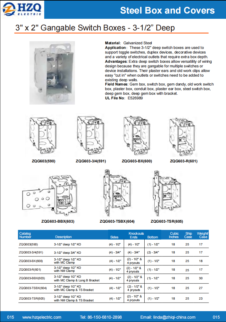 Field Names: Gem box, switch box, gem dandy, old work switch box, plaster box, conduit box, plaster ear box, steel switch box, deep gem box, deep gem box with bracket.