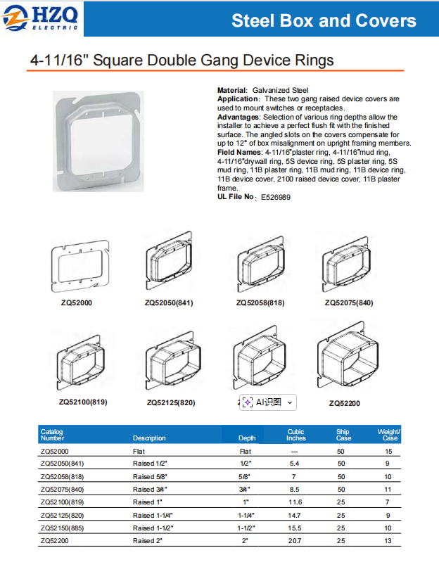 Field Names: 4-11/16”plaster ring, 4-11/16”mud ring, 4-11/16”drywall ring, 5S device ring, 5S plaster ring, 5S mud ring, 11B plaster ring, 11B mud ring, 11B device ring, 11B device cover, 2100 raised device cover, 11B plaster frame.