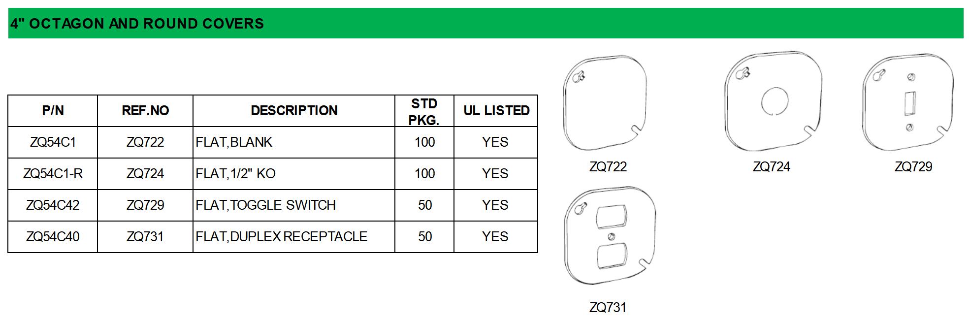• 4″ octagon blank flat covers are used to cover 4″ octagon box wiring and provide a means for access when future conduit runs are required