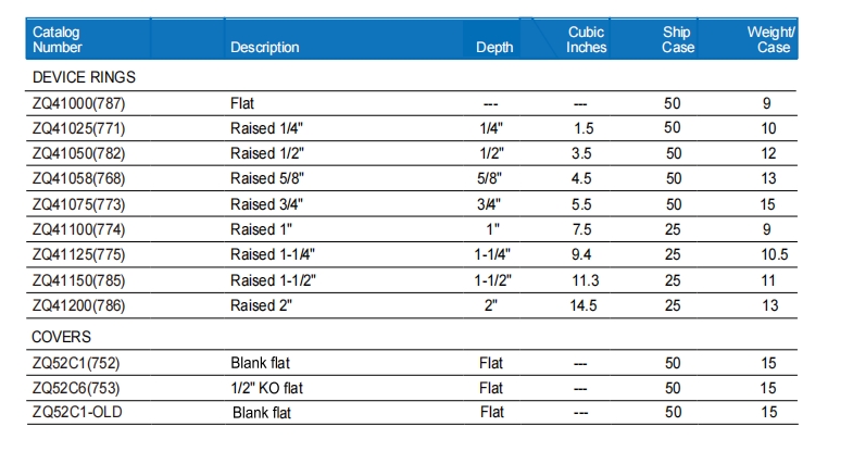 Application:These raised device covers are used with 4”square boxes to mount switches, receptacles and devices.
