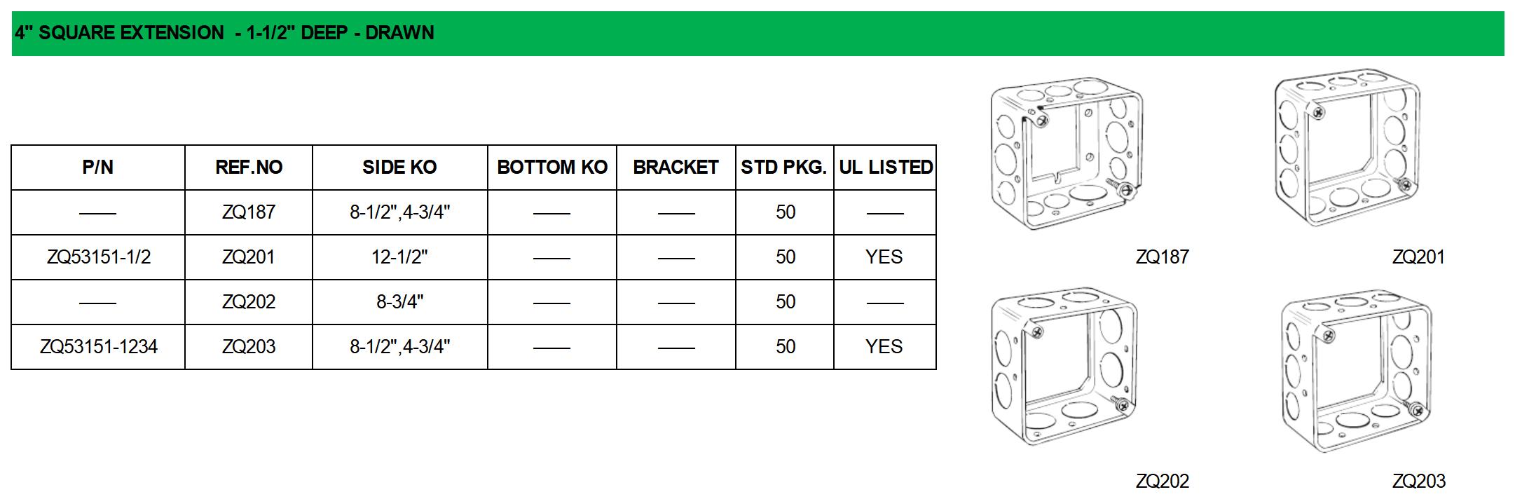 4 Inch Square Boxes & Extensions-1-1/2 Inch Deep(Drawn)