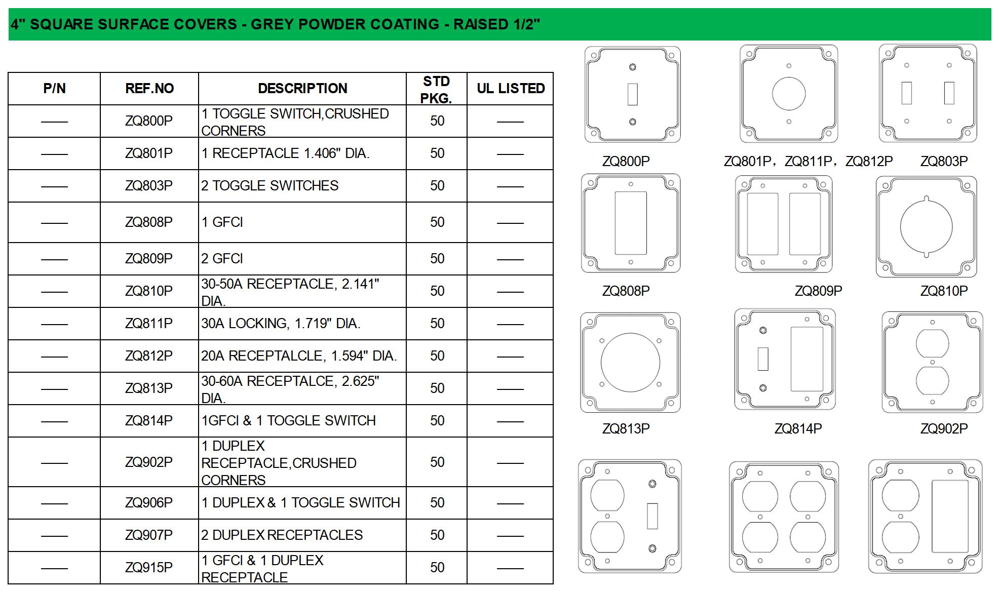 • 4″ square industrial surface covers allow for a quick installation of electrical devices to steel covers before they are mounted to the box