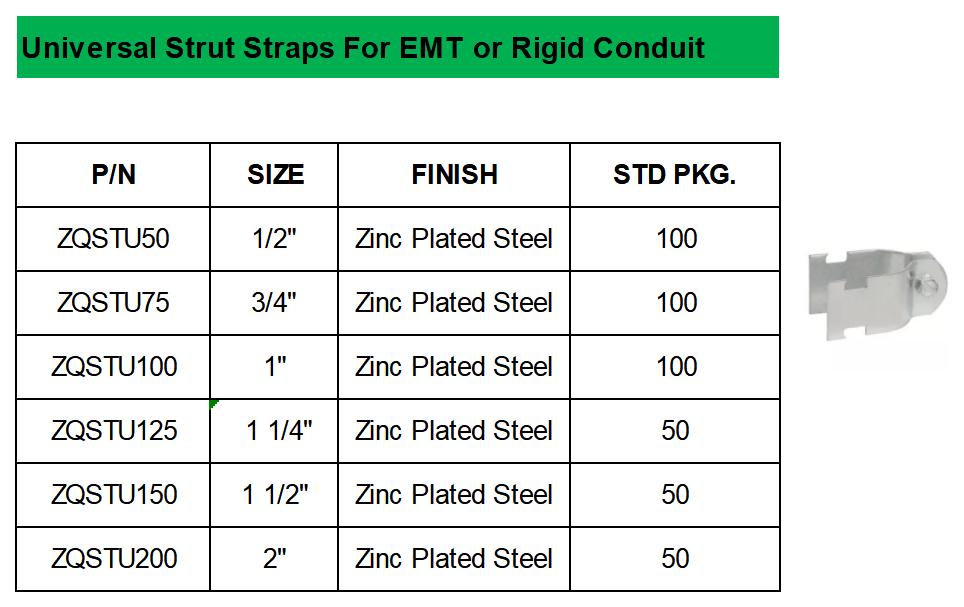 1.Application:These universal strut clamps are used to mount EMT and rigid conduit from strut channel.