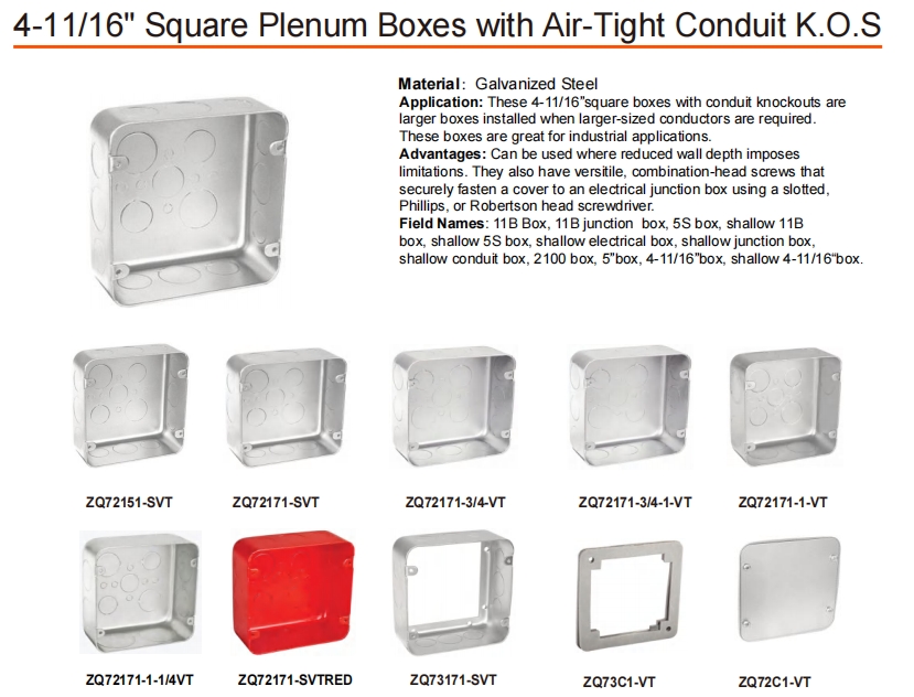 أسماء الحقل:مربع 11B ، صندوق تقاطع 11B ، صندوق 5S ، صندوق 11B الضحل ، مربع 5S الضحل ، صندوق كهربائي ضحل ، صندوق تقاطع ضحل ،صندوق القناة الضحلة ، مربع 2100 ، صندوق 5 "، 4 - 11/16" مربع ، ضحلة 4 - 11/16 "مربع.