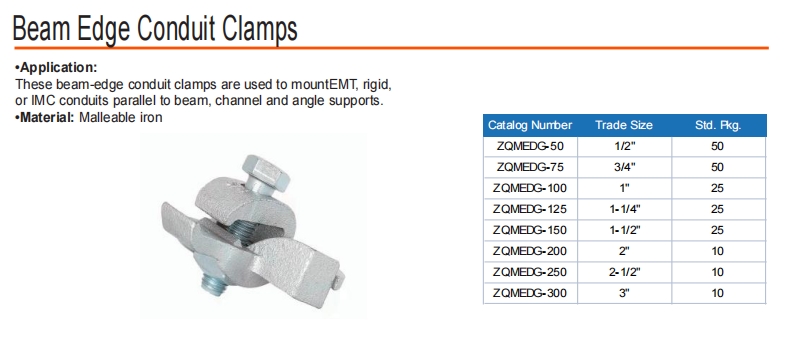 يتم استخدام مشابك قناة الحافة - الحافة في قنوات Mountemt أو Rigid أو IMC بالتوازي مع دعامات القناة والزاوية.