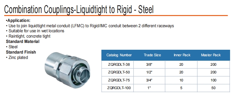 - · استخدم للانضمام إلى قناة المعادن المصففة (LFMC) إلى قناة صلبة/IMC بين 2 جريرين مختلفين