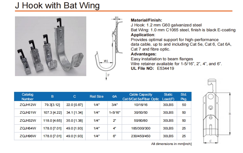 J -hook: 1.2 مم G60 الصلب المجلفن