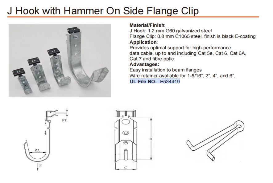 J -hook: 1.2 مم G60 الصلب المجلفن