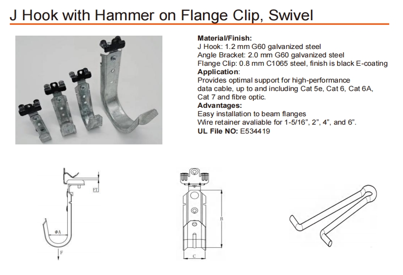 J -hook: 1.2 مم G60 الصلب المجلفن