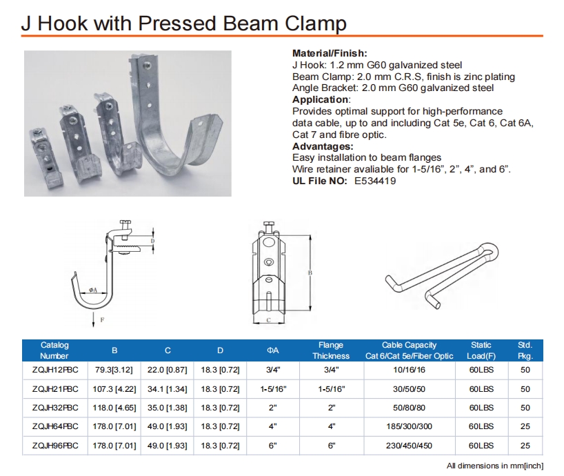 J -hook: 1.2 مم G60 الصلب المجلفن