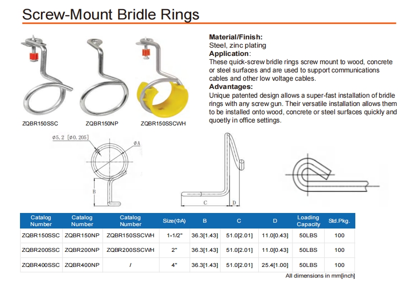 هذه حلقات اللجام السريعة - الحلقات اللولبية المسمار على الأسطح الخشبية أو الخرسانة أو الصلب وتستخدم لدعم الاتصالات