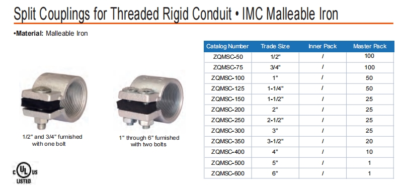 تقسيم التوصيلات للقناة الصلبة الخيوط • IMC مرنة الحديد