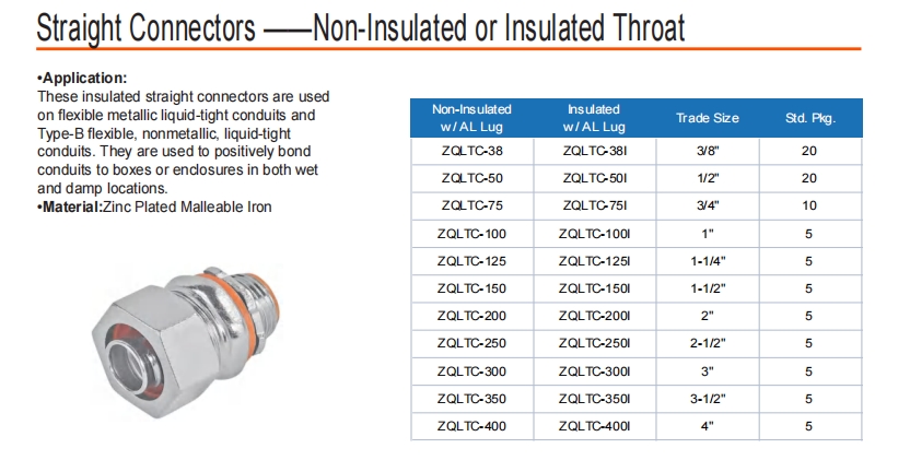 يتم استخدام هذه الموصلات المستقيمة المعزولة على سائل معدني مرن - قنوات ضيقة ونوع - B المرنة ، غير المعدنية ، السائلة - يتم استخدامها لربط القنوات الإيجابية مع الصناديق أو العبوات في كل من المواقع الرطبة والرطبة.