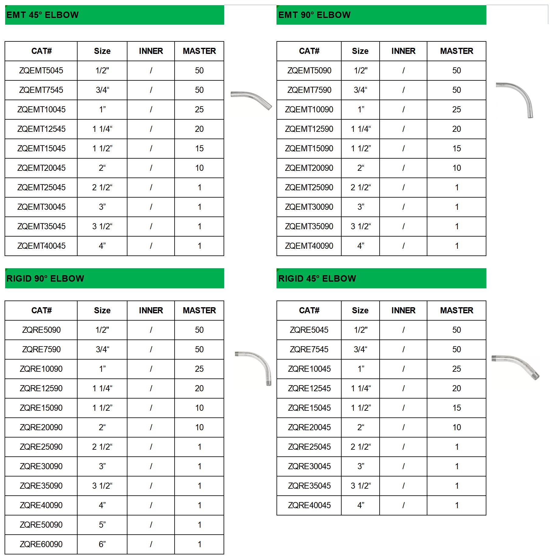 45° and 90° EMT/Rigid Eblows