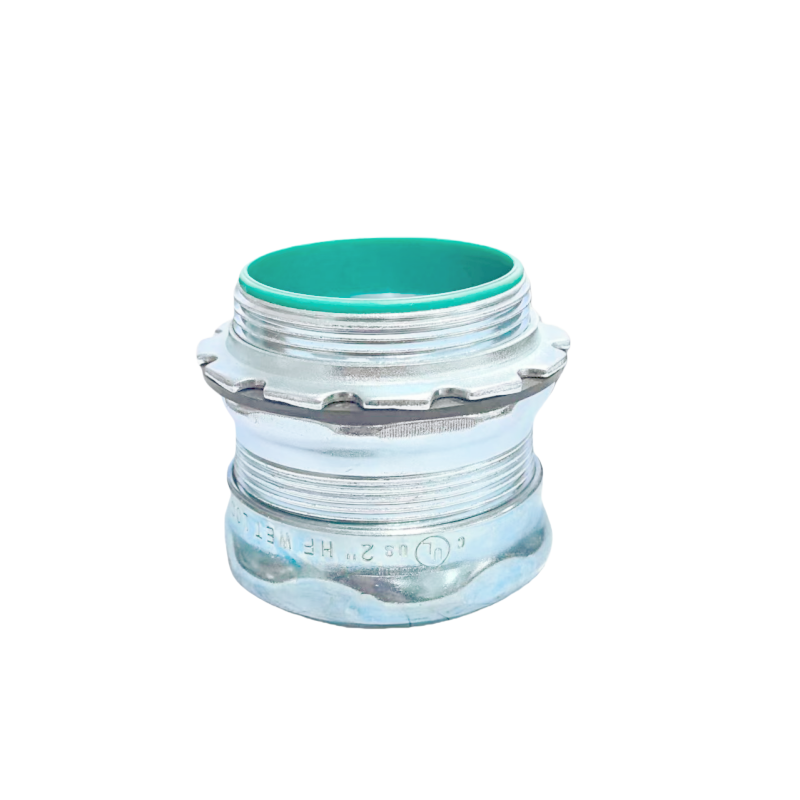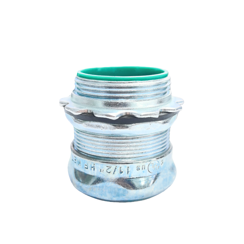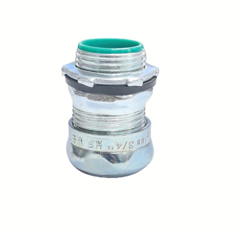 These uninsulated compression connectors are used to bond EMT thinwall conduits to electrical junction boxes or enclosures.