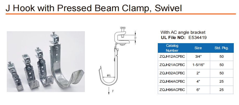 J Hook with Pressed Beam Clamp, Swivel