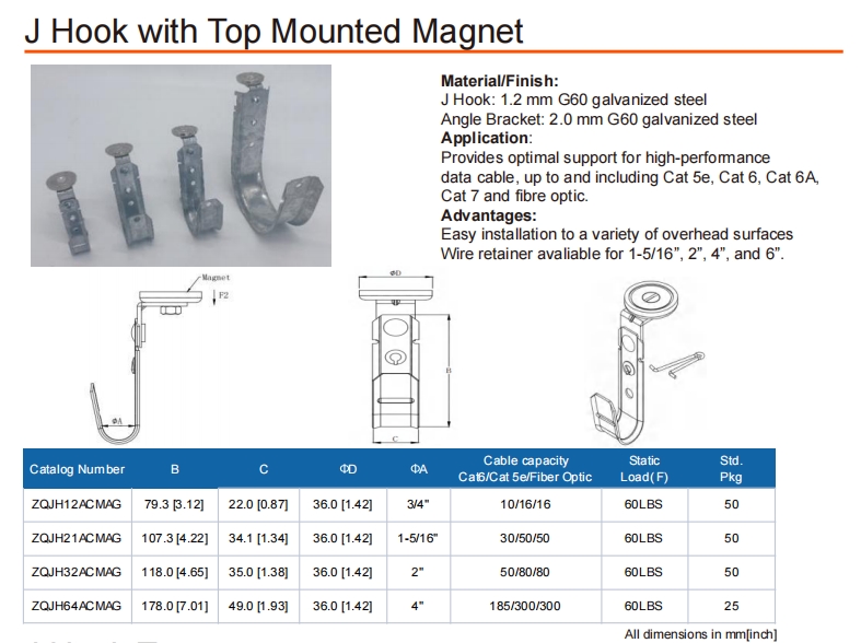 Provides optimal support for high-performance data cable, up to and including Cat 5e, Cat 6, Cat 6A,