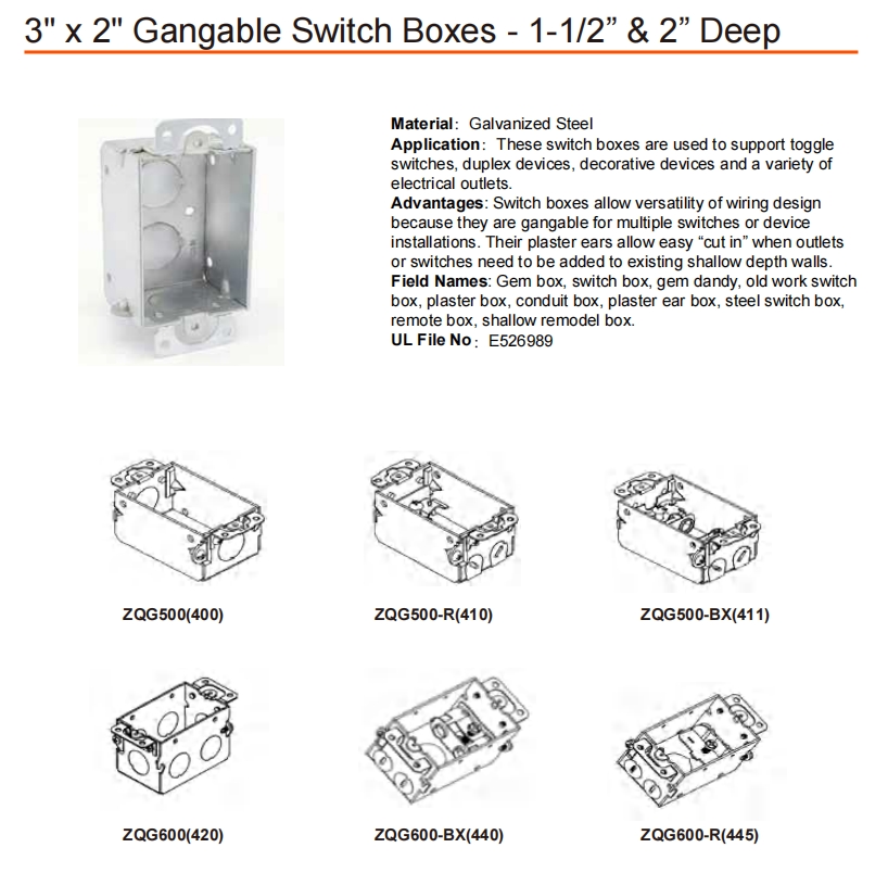 3 "x 2"ギャング可能なスイッチボックス- 1 - 1/2”&2”深さ