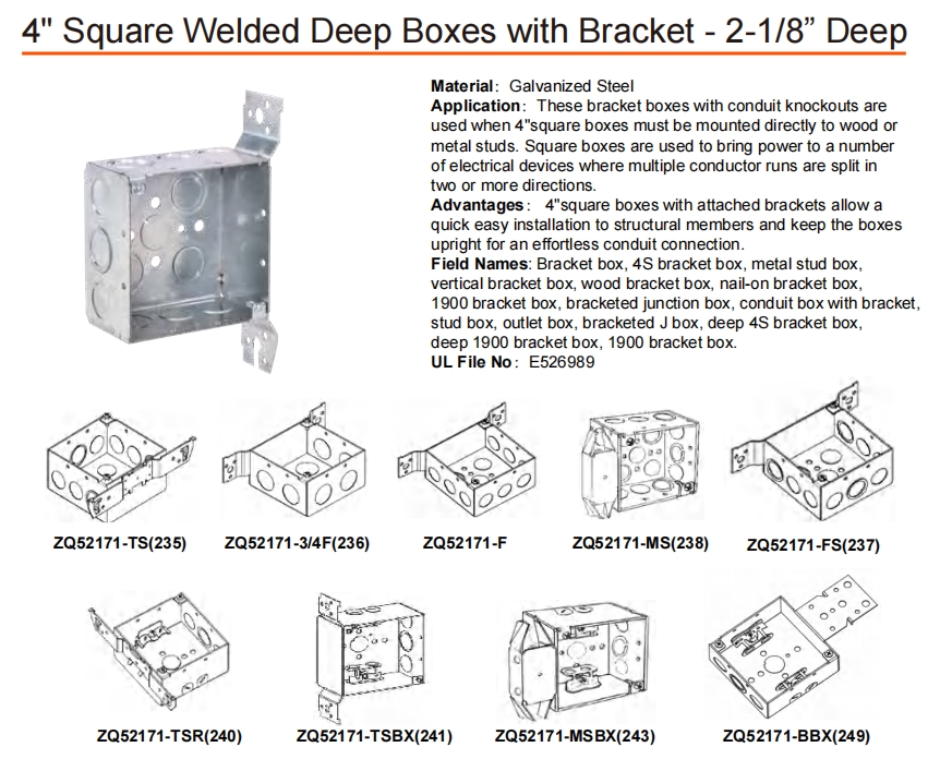 利点:ブラケットが取り付けられた4 "の正方形の箱により、構造メンバーに簡単にインストールし、箱を保持できます楽なコンジット接続のために直立してください。