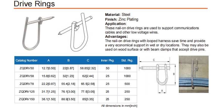 ドライブリング上のこれらの釘は、通信ケーブルやその他の低電圧ワイヤをサポートするために使用されます。