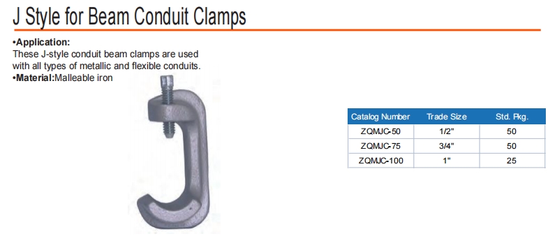 これらのJ -スタイルのコンジットビームクランプは、あらゆる種類のメタリックで柔軟なコンジットで使用されます。