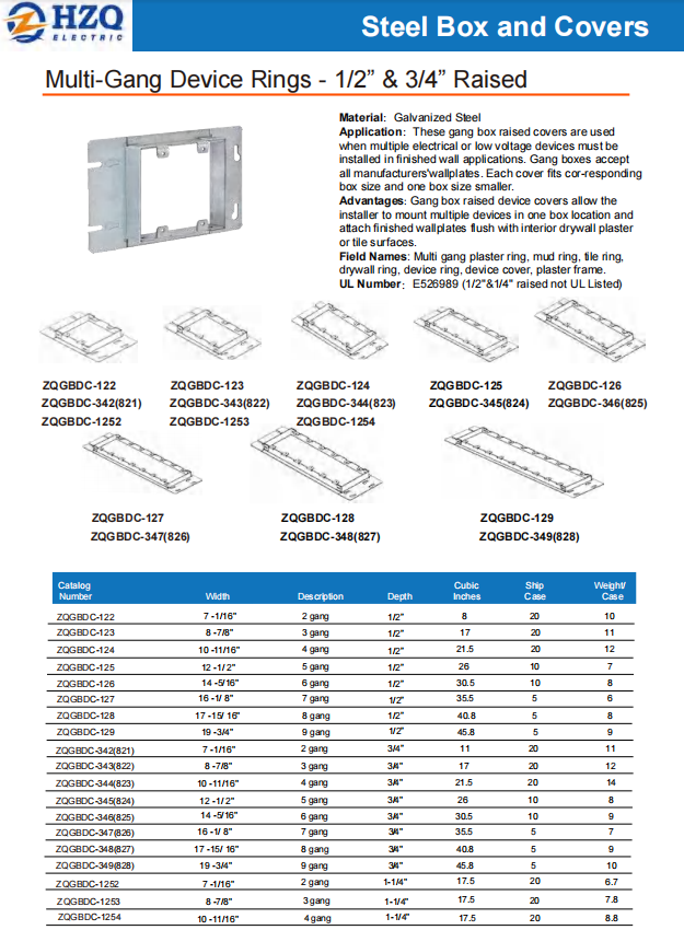 Application:These gang box raised covers are used when multiple electrical or low voltage devices must be installed in finished wall applications. Gang boxes accept all manufacturers'wallplates. Each cover fits cor-responding box size and one box size smaller.