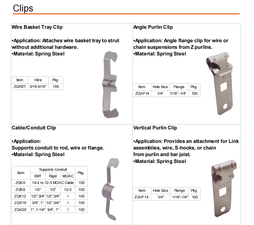 Application: Attaches wire basket tray to strut without additional hardware.