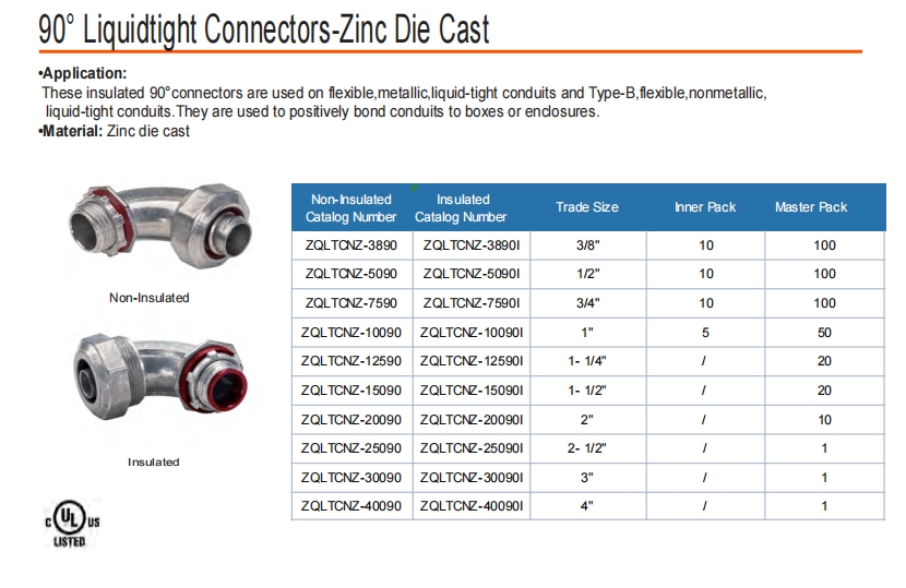 90 ° Liquidtight Connectors - Zinc Die Cast