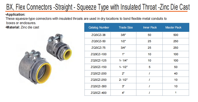 BX, Flex Connectors - Straight - Сжать тип с изолированным горлом -