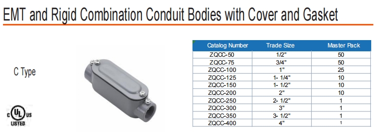 C EMT типа и жесткие комбинированные трубопроводы с крышкой и прокладкой