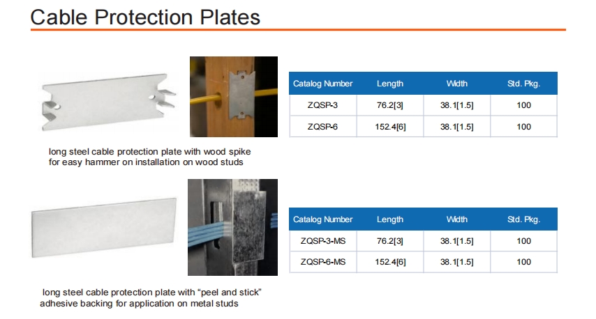 ·Длинная стальная защита кабеля с деревянным всплеском для легкого молотка при установке на деревянных шпильках