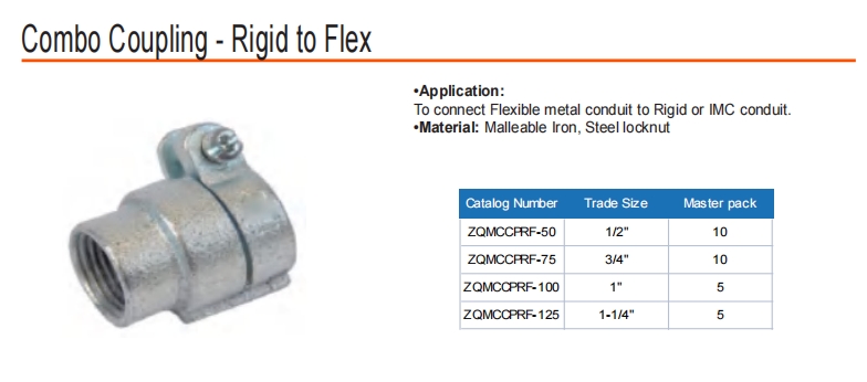 Чтобы подключить гибкий металлический трубопровод к жесткому или IMC Confuit.