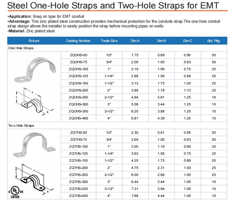- Преимущество:Эта цинковая стальная конструкция обеспечивает механическую защиту для ремня каналов. Конструкция ремешка для кабелевого ремешка One - Hole позволяет установщику легко расположить ремешок перед установкой труб на стенах.