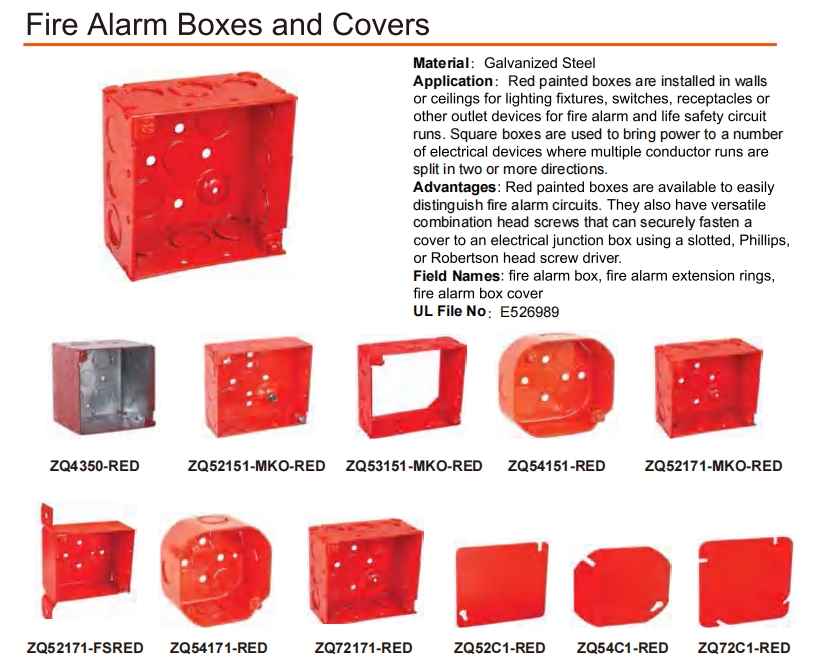 Преимущества:Красные окрашенные коробки доступны для легко отличия цепей пожарной сигнализации. У них также есть винты с винтовой головкой, которые могут надежно прикрепить к электрическому соединению, используя отвертку с головками, Phillips или Robertson Head.