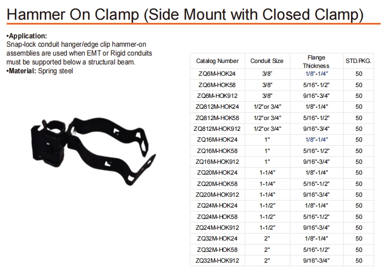 SNAP - LOCK CONDUIT HANTER/EDGE CLIP HAMMER - На сборках используются, когда EMT или жесткие каналы должны поддерживаться под конструктивным пучком.