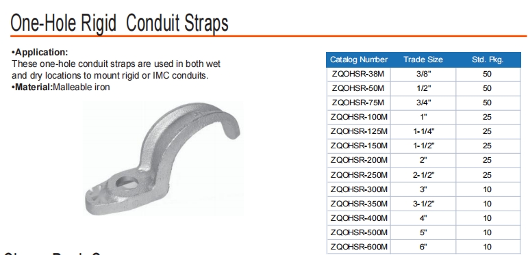 Эти единые ремешки из отверстия используются как во влажных, так и в сухих местах для установки жестких или IMC -каналов.