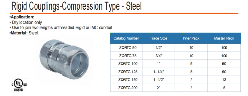 - Используйте для соединения двух длины бездомных жестких или IMC Conbuit