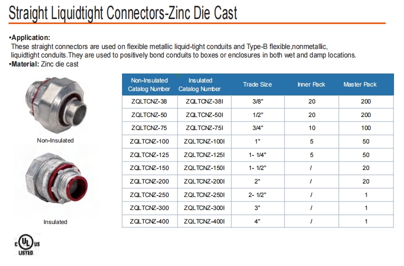 Эти прямые разъемы используются на гибкой металлической жидкости - плотные каналы и тип - B Гибкие, неметаллические, жидкие продление. Они используются для положительных связей с коробками с коробками или корпусами как во влажных, так и во влажных местах.