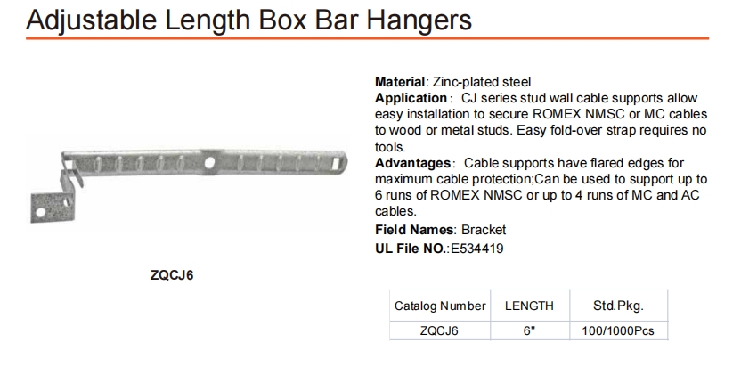 Приложение: Подпорные кабельные кабельные кабельные кабельные кабельные кабели CJ позволяют легкой установке для обеспечения кабелей Romex NMSC или MC на деревянные или металлические шпильки. Easy Fold - Over rap не требует инструментов.