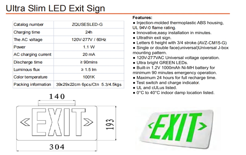 Ультра -тонкий светодиодный знак выхода (зеленый)
